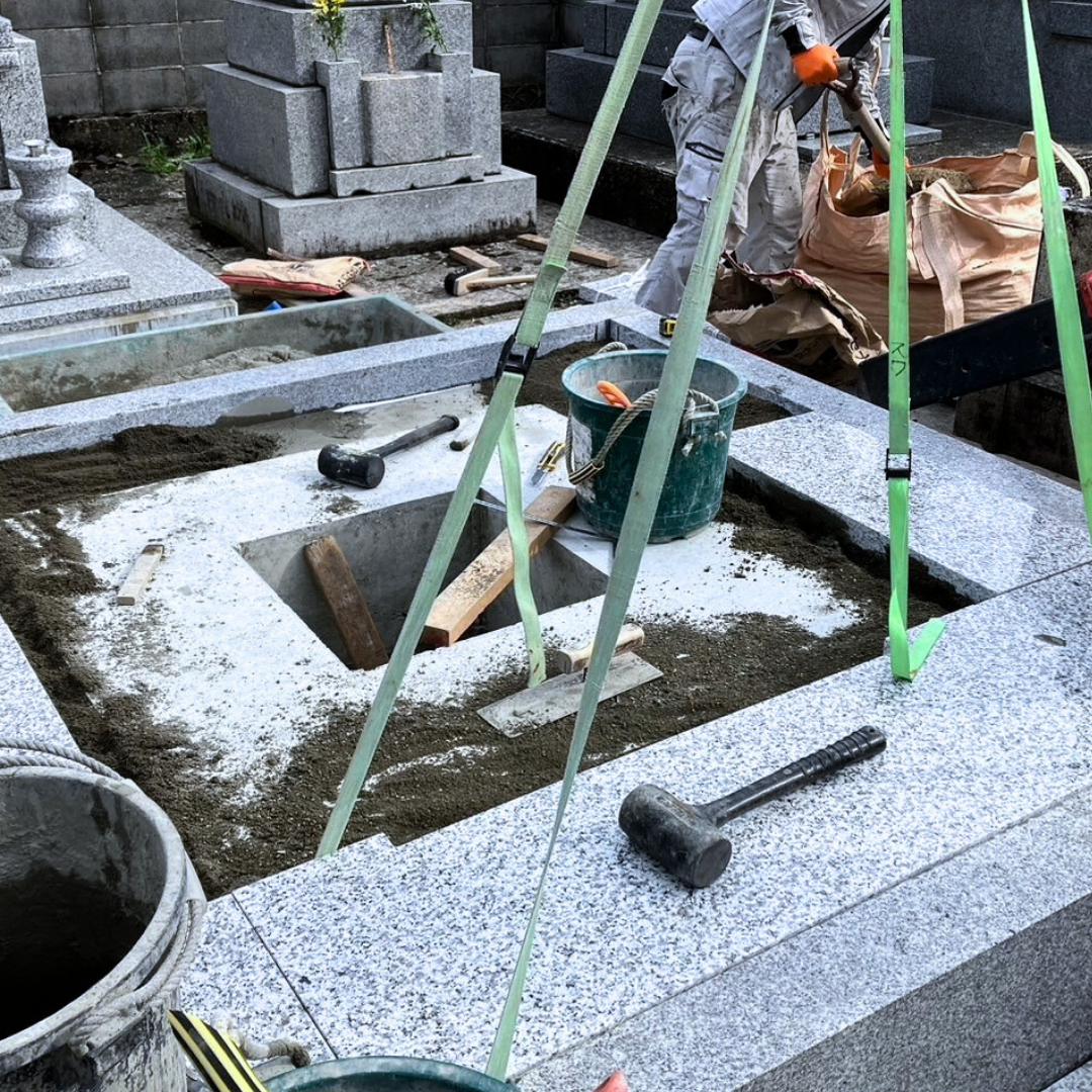 老朽化した基礎は、墓石の傾きや破損の原因になります。 お墓を別の墓地へ移したい、区画変更をしたいといったご相談に、現地調査から移設作業、基礎工事まで一貫対応いたします。 山岡石材店では、基礎の解体から新設まで経験豊富な専門の職人が対応し、長く安心してお参りできる環境を整えています。 長期的な安全性と耐久性を重視し、丁寧な施工でトラブルのないスムーズな墓石移設を実現します。